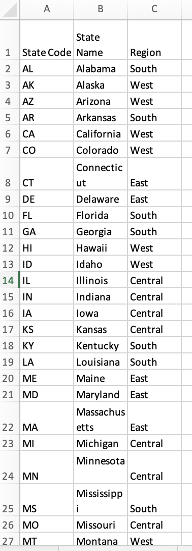 This page will be about the Excel 2 project that was completed this spring semester of 2024 in ISM 3011. This project required students to reinforce their knowledge of previous Excel skills by recalling their previous skills learned in the past two projects. Furthermore, the students needed to create a way to find information efficiently. In the project, the students were given state data and needed to create an Excel project that satisfied all the requirements.